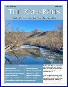 The Cowpasture River Preservation Association publishes a newsletter four times each year (once per season) featuring upcoming events, updates from meetings and workshops, reports on our stream monitoring program and other topics of interest to our membership and supporters of the Cowpasture River watershed. Follow the links below to read our most recent issues: